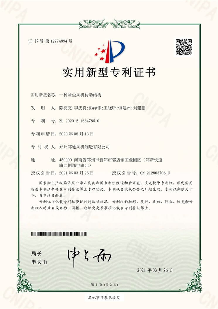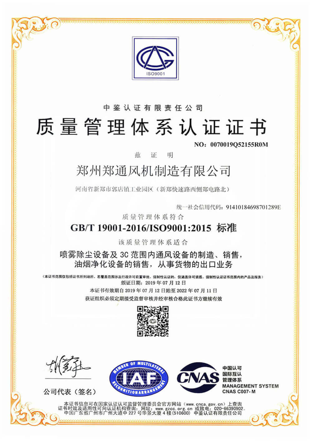 鄭通風機主要產品包括:高壓風機、不銹鋼風機、消防排煙風機、防腐防爆風機、廚房排油煙風機、玻璃鋼風機、鍋爐引風機、軸流風機、柜式離心風機、鍋爐引風機,產品通過ISO9001、ISO14001、ISO45001國際標準化組織制定的質量管理體系認證,部分產品通過了3C認證和國家防爆電器產品質量監(jiān)督檢驗中心認證。